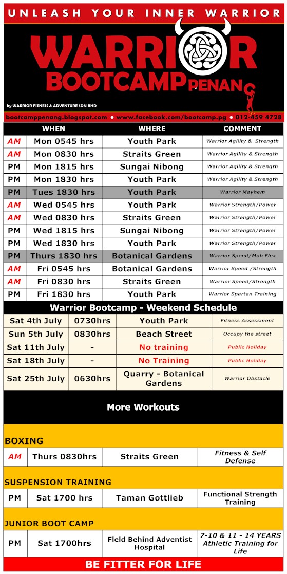 19 Jul Warrior Schedule: 20th- 26th July: Obstacle Race Training this Friday and Saturday Morning By : webdev Uncategorized Comment: 0 SIGN UP HERE Comments 0 Leave a Comment Click here to cancel reply.